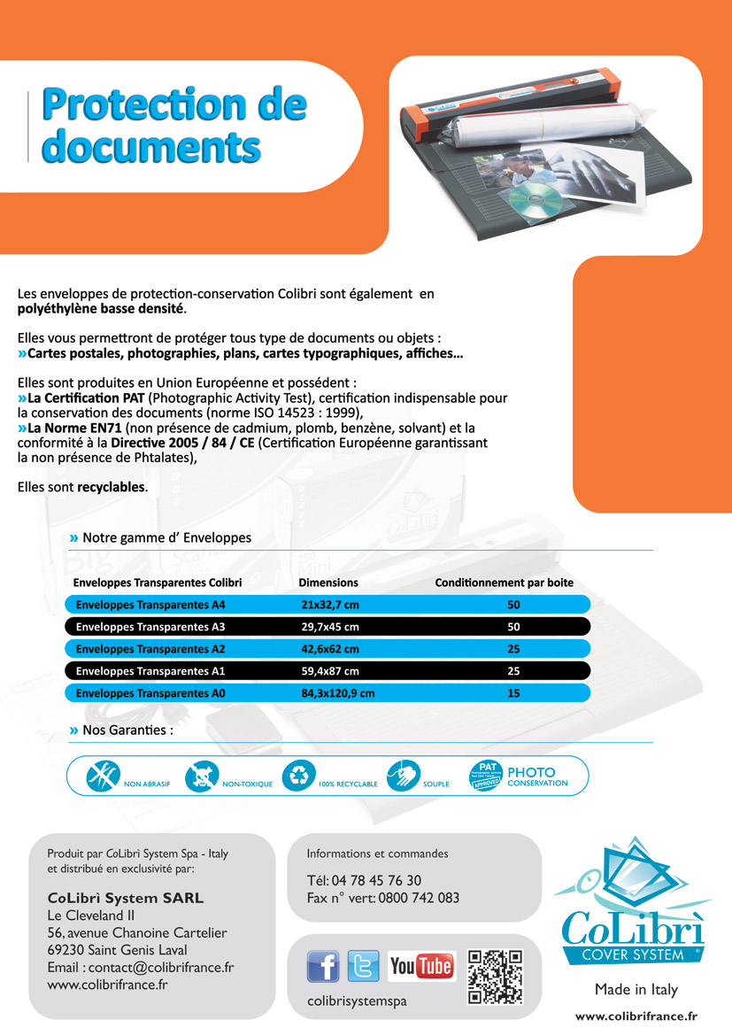 Les enveloppes de protection-conservation Colibri sont également en polyéthylène basse densité.